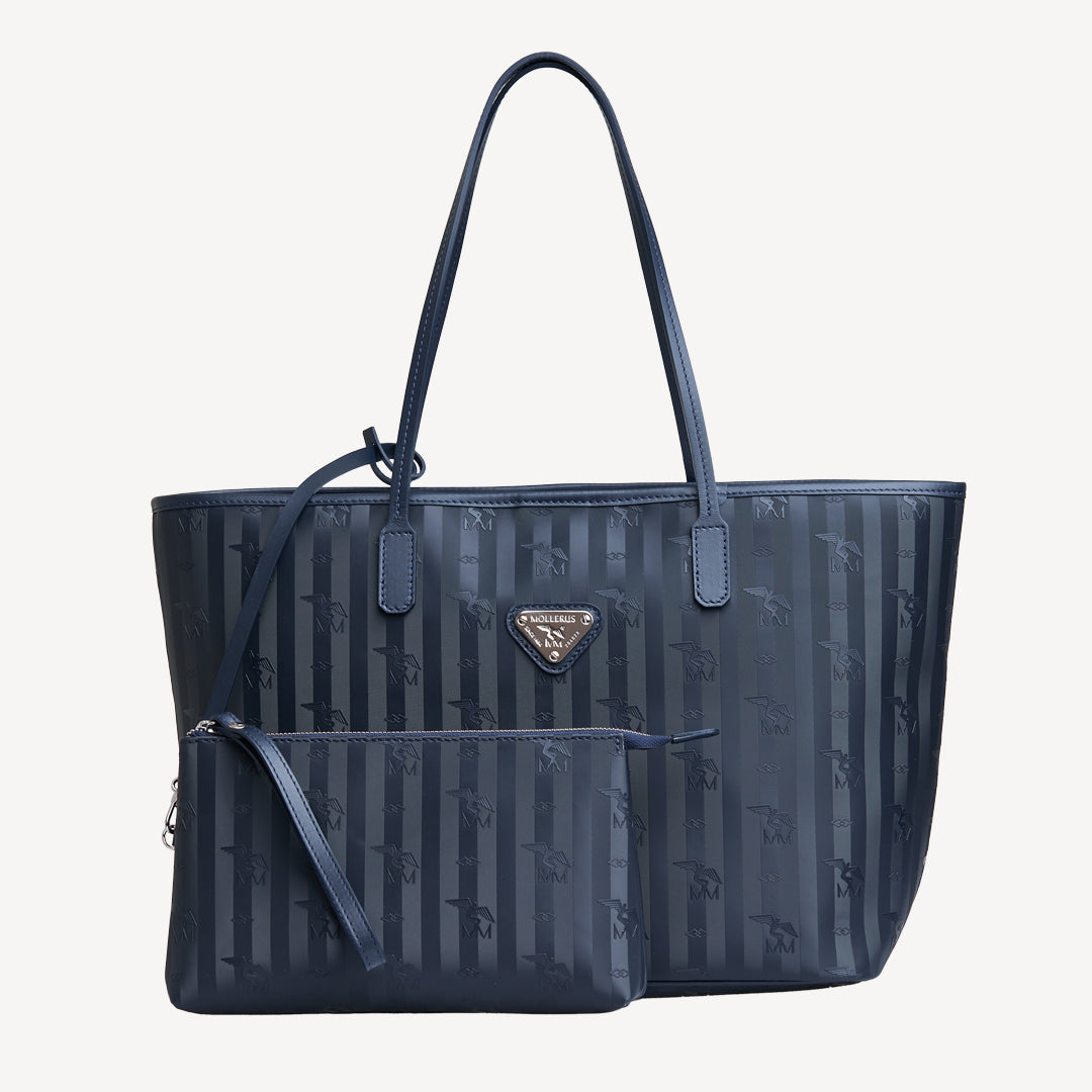 Die Vinerus Space Blau Silber Kollektion von Maison Mollerus steht exemplarisch für Schweizer Handwerkskunst und luxuriöse Qualität. Das exklusiv entwickelte Vinerus-Material, ein robustes beschichtetes Canvas mit dem ikonischen Ikarus-Logo und unverkennbarem Streifenmuster, ist seit 1984 das Markenzeichen des Hauses. Die Linie hat sich im Laufe der Jahre zu einem zeitlosen Klassiker entwickelt und vereint Funktionalität mit eleganter Ästhetik, ideal für den stilbewussten Alltag, vom Businessmeeting bis zum Freizeitausflug.