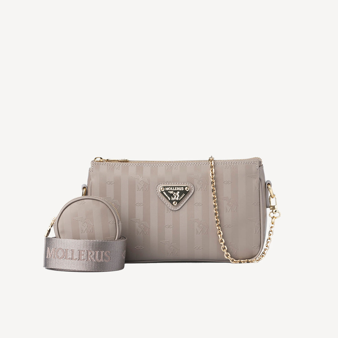 SEENGEN | Beuteltasche geprägtes Kalbsleder taupe grau/silber