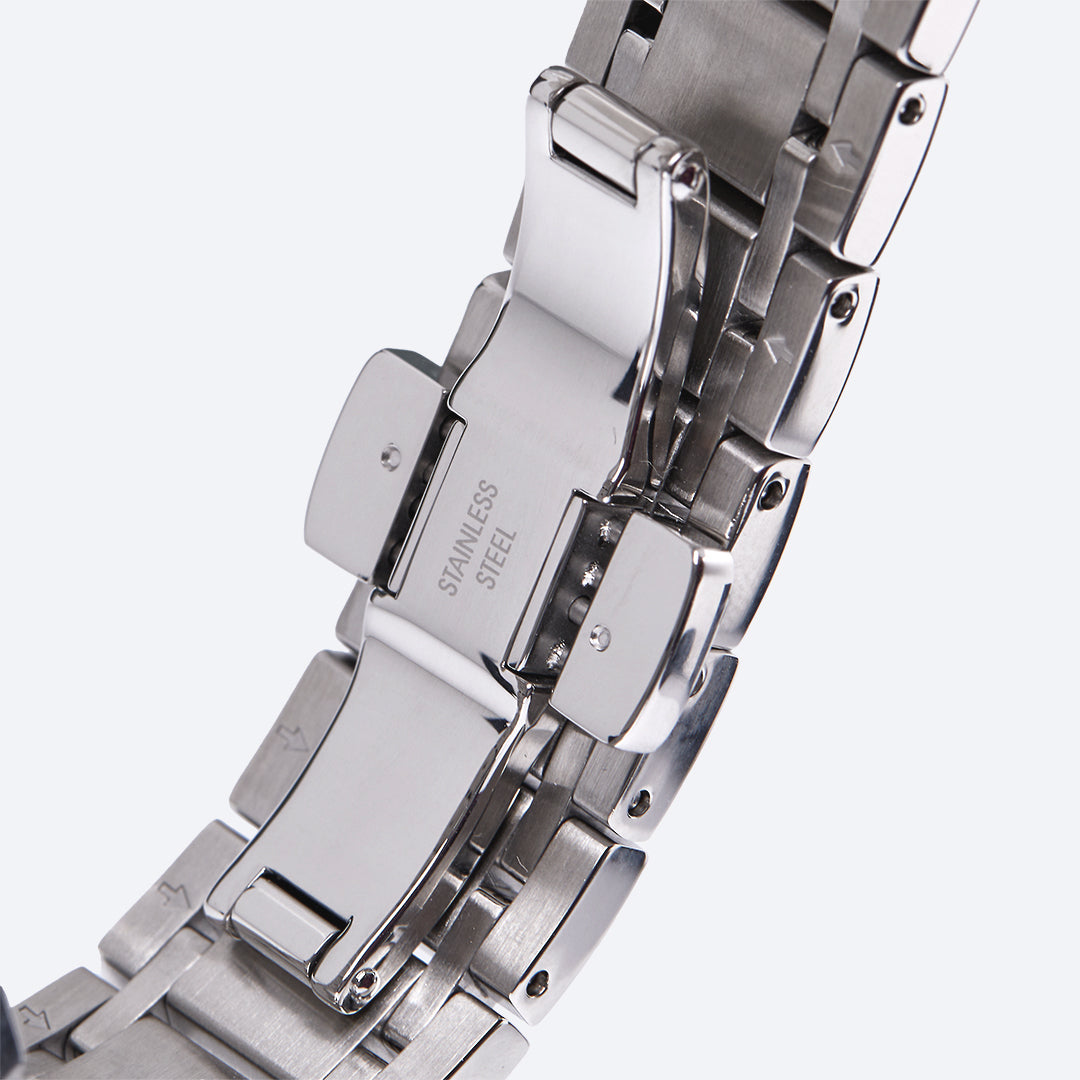 Mouvement à quartz Swiss Made - glace saphir inrayable - boîtier en acier inoxydable ainsi que couronne vissée et fond de boîtier pressé