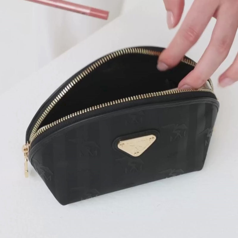 Qu'il s'agisse d'une trousse de toilette ou d'une pochette pour divers petits objets, la trousse GAEBRIS en noir/or est stylée, classique et élégante et s'accorde ainsi parfaitement avec votre sac MAISON MOLLERUS.